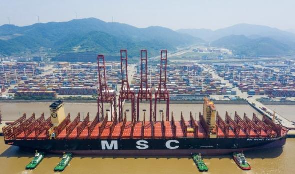 我國自主研制的超大型集裝箱船“地中海米歇爾卡佩里尼”輪成功首航,標(biāo)志著我國航運(yùn)業(yè)邁向了新的里程碑。近日,這艘引人矚目的巨輪??吭趯幉ㄖ凵礁鄞┥礁蹍^(qū)集裝箱碼頭,開啟了其輝煌的航運(yùn)之旅。這也是穿山港區(qū)在短短78天內(nèi)迎來的第3艘超大型集裝箱貨輪首航。