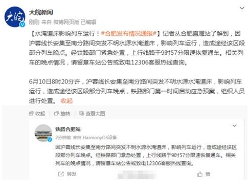 事發(fā)于6月10日早上8時20分左右,滬蓉線長安集至南分路段發(fā)生不明水源水淹情況,嚴重干擾了列車運行。鐵路部門立即啟動應(yīng)急預(yù)案,組織人員進行緊急處理。