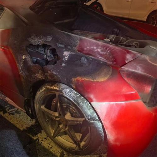 根據消防部門提供的畫面顯示,法拉利車的駕駛室后方已經燒出了一個大洞,可見火勢之猛烈。事情發生在晚上8點半前后,當地浦沿消防救援站接到求助后,立即派出消防員趕赴現場。但是在他們到達之前,附近的交警已經利用車上的滅火器將火撲滅。