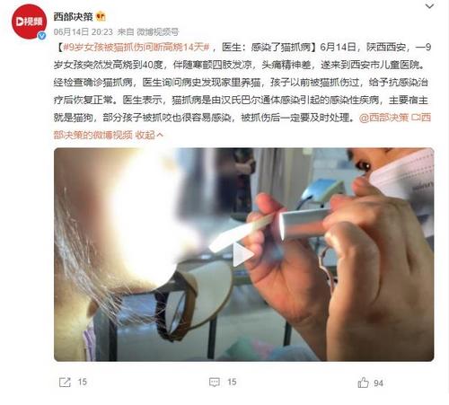 6月14日,陜西西安發生了一起引人關注的事件。一名9歲女孩突然出現高燒,體溫達到40度,并伴有寒顫、四肢發涼、頭痛和精神差的癥狀。家人立即將她送往西安市兒童醫院就診。經過檢查,醫生確診她患有貓抓病。醫生在詢問病史時發現,女孩家里養有貓,并且她之前曾經被貓抓傷過。經過抗感染治療后,女孩的癥狀恢復正常。