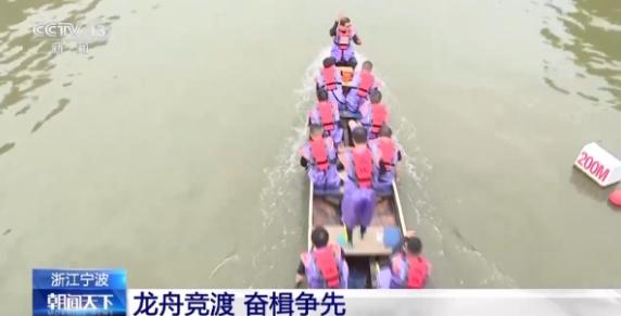 在浙江寧波鄞州區(qū)云龍鎮(zhèn),伴隨著陣陣鑼鼓聲,20支參賽隊(duì)的龍舟隊(duì)員們整齊劃動(dòng)雙臂,全力劃槳,在長達(dá)500米的賽道上爭奪頭名。眾多市民和游客聚集在河岸兩側(cè),為隊(duì)員們加油助威。