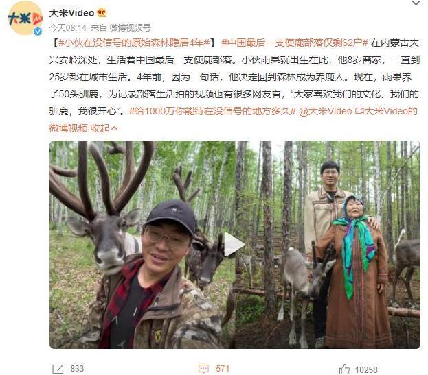 在內蒙古大興安嶺深處,棲息著中國最后一支使鹿部落。生活在這里的年輕人雨果,出生在部落,但在8歲時離開家鄉,一直在城市生活,直到25歲。然而,因為一句話,他決定回到原始森林,成為一名養鹿人。現在,已經過去了4年,雨果養了50頭馴鹿,并通過記錄部落生活的視頻吸引了許多網友的關注和喜愛。“大家對我們的文化和馴鹿都很感興趣,這讓我感到非常開心。”這個故事展現了一個年輕人選擇與自然共處,執著于傳承和保護文化的精神,令人欽佩。