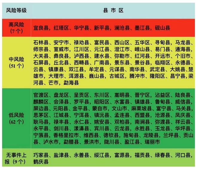 該措施的制定依據(jù)了2020-2022年全省野生菌中毒數(shù)據(jù)以及各地區(qū)的有毒野生菌種類。重點(diǎn)關(guān)注中毒致死的野生菌亞稀褶紅菇和劇毒鵝膏類等。云南省將全省所轄的129個縣(市、區(qū))劃分為高、中、低三個風(fēng)險等級。累計中毒事件起數(shù)大于等于100起或死亡人數(shù)大于等于3人的地區(qū)劃定為高風(fēng)險地區(qū);累計中毒事件起數(shù)為30-99起或死亡人數(shù)為1-2人的地區(qū)劃定為中風(fēng)險地區(qū);累計中毒事件起數(shù)小于30起且無死亡的地區(qū)劃定為低風(fēng)險地區(qū)。為便于掌握風(fēng)險分布情況,還制作了《2023年云南省有毒野生菌中毒風(fēng)險分級地圖》和《2023年云南省有毒野生菌中毒風(fēng)險分級表》。
