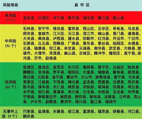 根據(jù)這一劃分標(biāo)準(zhǔn),云南省共有7個高風(fēng)險地區(qū)(包括宜良縣、紅塔區(qū)、華寧縣、新平縣、瀾滄縣、墨江縣、硯山縣),51個中風(fēng)險地區(qū),62個低風(fēng)險地區(qū),還有9個地區(qū)沒有上報相關(guān)數(shù)據(jù)。針對不同風(fēng)險等級地區(qū),云南省將從宣傳發(fā)動、信息報送、加強監(jiān)測、精準(zhǔn)干預(yù)、強化監(jiān)管、應(yīng)急響應(yīng)、強化救治等方面制定相應(yīng)的2023年有毒野生菌中毒風(fēng)險防控措施,以分級分層的方式進行防控工作。