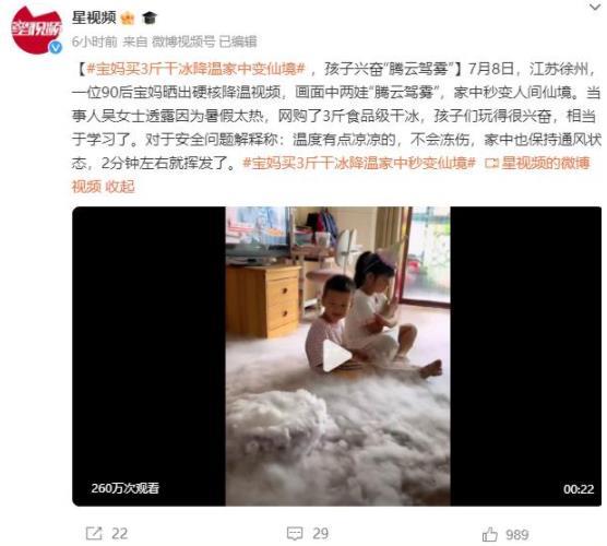 近日,江蘇徐州的一位90后寶媽分享了一段令人驚嘆的降溫視頻,畫面中兩個孩子仿佛在云霧中自由飛翔,家中瞬間變成了童話仙境。吳女士透露,由于暑假天氣太熱,她購買了3斤食品級干冰,孩子們非常興奮地玩耍,同時也獲得了一些學(xué)習(xí)上的啟發(fā)。對于安全問題,她解釋說干冰的溫度雖然有些涼,但不會造成凍傷,家中保持良好通風(fēng),干冰在約2分鐘內(nèi)會迅速揮發(fā)消失。這個創(chuàng)意的降溫方法為家庭帶來了一場獨特的歡樂體驗。