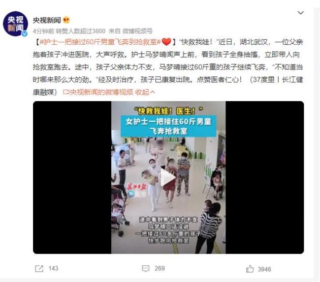 近日,湖北武漢市一幕感人的救援場景在醫院內上演。一位父親緊抱著孩子沖進醫院,焦急地呼救。在這緊急的時刻,一名護士馬夢晴聽到聲音后迅速上前,眼見孩子全身抽搐,立即帶領救援團隊前往搶救室??墒峭局校⒆拥母赣H體力不支,馬夢晴毫不猶豫地接過60斤重的孩子,繼續飛奔向搶救室,將孩子安全送至目的地。“不知道當時哪來那么大的勁。”馬夢晴謙虛地表示。