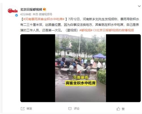 近日,河南新鄉(xiāng)市遭遇了一場(chǎng)暴雨,導(dǎo)致許多地區(qū)出現(xiàn)了嚴(yán)重的積水情況。在這場(chǎng)突如其來(lái)的暴雨中,一位劉先生通過(guò)視頻記錄了一幕令人意外的場(chǎng)景。視頻中顯示,由于積水深達(dá)二三十厘米,高到達(dá)膝蓋位置,一場(chǎng)白事無(wú)法更換場(chǎng)地,賓客們只能在積水中進(jìn)行用餐。對(duì)于劉先生來(lái)說(shuō),作為表演的工作人員,這樣的情景也是第一次見(jiàn)到。