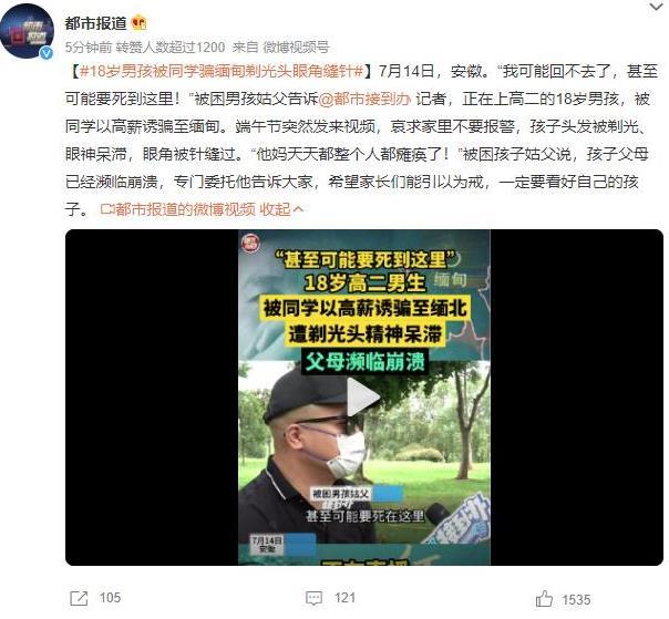 【18歲男孩被同學(xué)騙至緬甸剃光頭并眼角被縫針】家人驚恐發(fā)聲