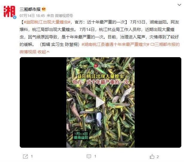 【益陽桃江蝗蟲災情嚴重,官方稱近十年來最嚴重】