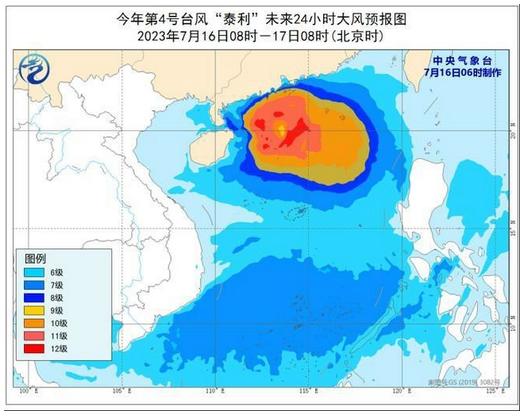 根據中央氣象臺于7月16日06時的最新數據,今年第4號臺風"泰利"(Talim)已于今天凌晨2點鐘由熱帶風暴級加強為強熱帶風暴級。臺風中心今天早晨5點鐘位于我國東沙島偏南方向約215公里的南海東北部海面上,即北緯18.7度、東經116.6度。目前,臺風中心附近最大風力為10級(25米/秒),中心最低氣壓為985百帕,七級風圈半徑為280公里。