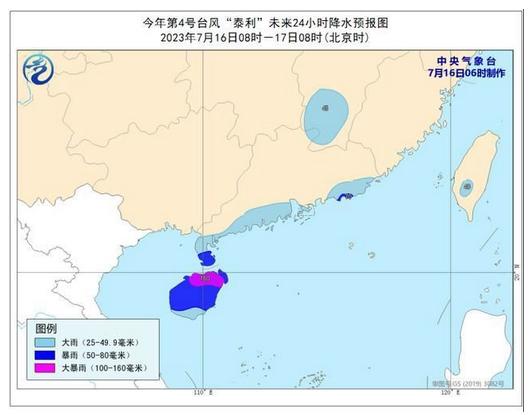 降水方面的預報顯示,在7月16日08時至17日08時期間,廣東南部和北部、海南島、福建東南部、江西中部和南部、臺灣島南部等地的部分地區將出現中到大雨。雷州半島南部、海南島等地可能局地出現暴雨或大暴雨,降水量為100-160毫米。
