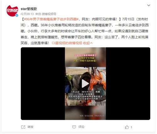 近日,西藏發生了一段感人至深的故事。一名年僅96歲的小伙,推著用輪椅改造的自制車,攜帶著癱瘓的妻子,徒步一年多從云南一路走到西藏。他們克服了重重困難和艱辛,用真愛和堅持書寫著一段不平凡的旅程。