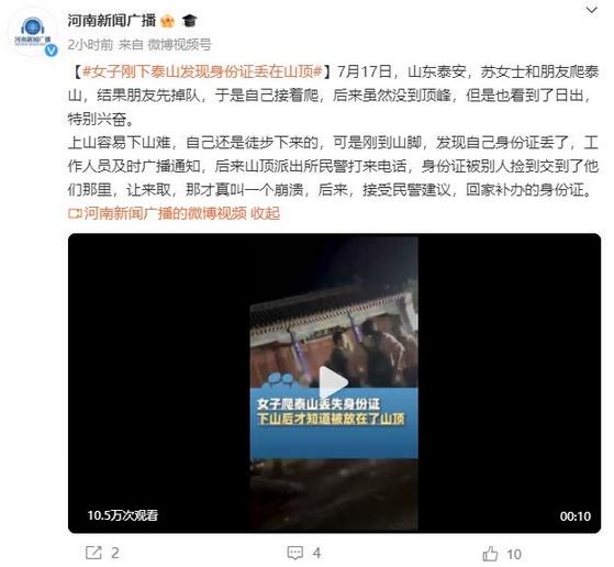 爬山容易下山難,蘇女士選擇徒步下山,然而在山腳發現自己的身份證不見了。她立即向工作人員報告,并迅速進行廣播通知。幸運的是,山頂派出所民警聯系她并告知身份證被別人撿到,已經交到派出所。雖然蘇女士有些崩潰,但她遵從民警建議,回家補辦了新的身份證。這個登山經歷成為了她難忘的回憶。