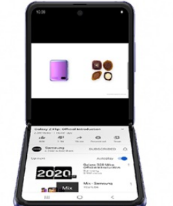 當您免提使用Galaxy Z Flip欣賞YouTube時,顯示屏將平均分成兩個4英寸的屏幕。顯示屏的上半部分觀看視頻時,您可以使用下半部分搜索其他視頻,閱讀說明并發表評論,而不會分心。