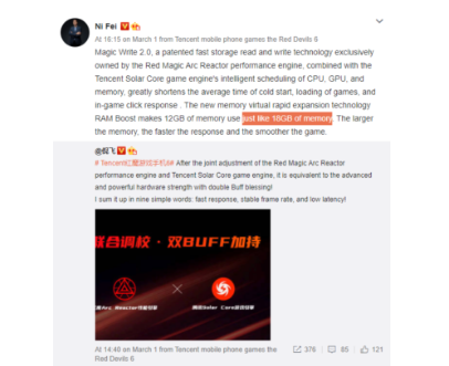 本周早些時候,努比亞總統倪飛在他的官方微博帳號(中國的微博網站)上分享了一條新帖子,其中展示了即將推出的Red Magic 6游戲智能手機對RAM Boost技術的支持。