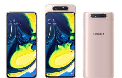于2019年首次亮相的三星Galaxy A80配備了6.7英寸FHD + AMOLED顯示屏,并采用了新的Infinity無缺口設計,Snapdragon 730G芯片組,8 GB RAM,128 GB存儲空間以及3,700mA電池(25W快速供電)等規格充電支持。A80的相機模塊包括一個48百萬像素的主相機,一個8百萬像素的超廣角鏡頭和一個ToF 3D傳感器。