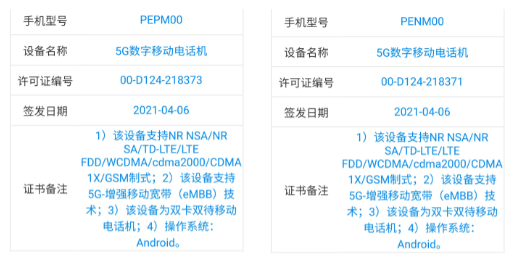 據中國引爆數字聊天臺的消息,PEPM00手機將與Reno6 Pro的名字一起在中國發布,而PENM00手機將以Reno6 Pro +的形式發布。他們在TENAA列表中只顯示了它們的尺寸,顯示器尺寸和電池容量。
