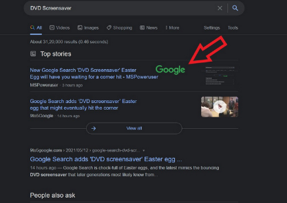 要訪問復(fù)活節(jié)彩蛋,您所需要做的就是搜索“ DVD屏幕保護(hù)程序”。如果聽起來工作量過多,則可以單擊上面的鏈接。您會在搜索頁面上看到“ Google”一詞,而不是文本“ DVD”。