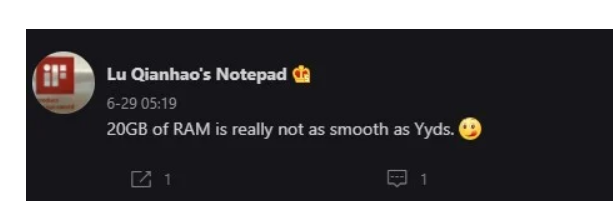 中興通訊高管陸千豪在微博上發帖暗示,中興將推出一款 20GB RAM 的手機。該帖子引發了對首款 20GB RAM 手機的猜測。