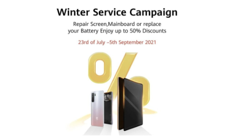 華為南非a正在開展華為冬季服務活動,提供維修服務的超級節省優惠,以照顧已售出的設備。消費者可享受最高 50% 的服務折扣,其中包括備件更換。