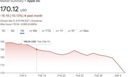 歐盟于3月4日,因蘋果公司在音樂流媒體應(yīng)用分發(fā)市場中對主導(dǎo)地位的濫用,向蘋果公司開出了18.4億歐元的罰單。蘋果的股票價格已經(jīng)好幾天連續(xù)暴跌,到目前為止,與曾經(jīng)的最高點(diǎn)相比下跌幅度已經(jīng)超過了15%。蘋果這些天的日子確實(shí)不好過,除了股票價格下跌、iPhone在中國的銷量驟減等問題,還要面對歐盟所開出的天價罰單。