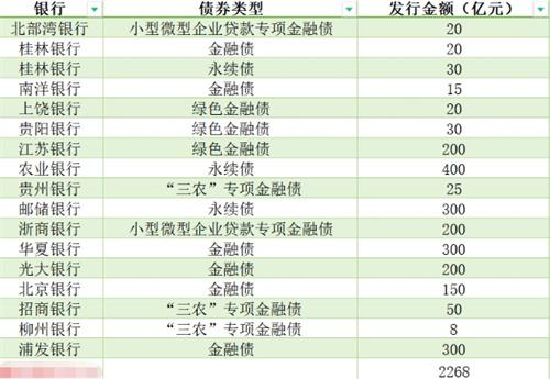 2.從具體的數據來看,各家銀行總共發行的普通金融債券總額達到人民幣985億,所占的比例達到43.43%,其中浦發銀行和華夏銀行的發行的金融債數額均為300億,光大銀行發行了人民幣200億,北京銀行的數額為人民幣150億,桂林銀行的數額為人民幣20億,南陽銀行的發行數額為人民幣15億。