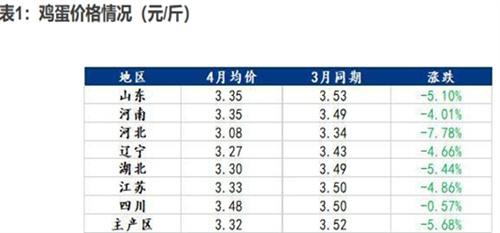 1. 全國主要產(chǎn)區(qū)4月份雞蛋的平均價格截止到4月17日,普遍出現(xiàn)下跌。市場目前處于不溫不火的狀態(tài)。