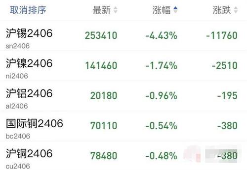 期貨有色金屬多個品種在周三早盤時出現了普遍回落。根據數據顯示,滬錫主力合約的下跌幅度超過4%,滬鋁、滬鎳的下跌幅度都超過了1%。滬銅和國際銅的價格均翻綠。
