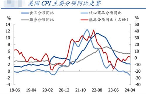 2024年4月美國的CPI指數同比上漲的幅度達到3.4%,與3月份的數據相比有所回落。美國前三個月的CPI同比上漲幅度均高于市場的預期,美元指數在數據公布之后出現了下跌,美股三大股指期貨出現了不同幅度的上漲。