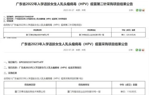 1.二價HPV疫苗的價格在一個月之前剛剛跌破百元。江蘇政府采購網此前公布了二價HPV疫苗采購成交的公告,公告信息顯示中標單位為萬泰生物,中標價格是86元/支。