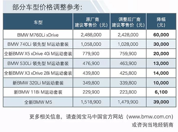 寶馬部分車(chē)型價(jià)格調(diào)整參考。