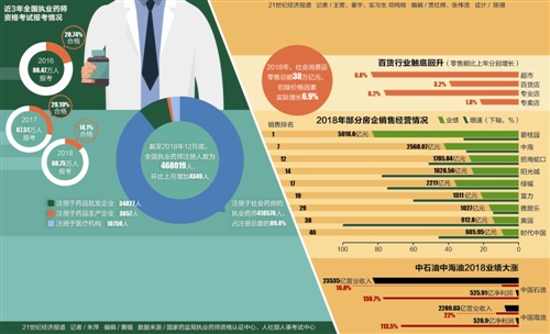 3月20日,成都某藥店負責人向21世紀經濟報道記者表示,很多藥店的執業藥師都是年紀較大且為中專學歷,而且執業藥師考試通過率很低,2018年合格率僅為14.1%。
