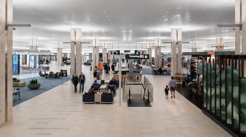 Skanska和HOK領導的項目在五個設施中增加了98,000平方英尺的封閉和可用空間以及69個特許經營空間。整個主航站樓的觀光線得到改善,建立了額外的座位區,并增加了四個乘客和員工的綠色露臺。另外兩個綠色露臺被用于餐廳使用。