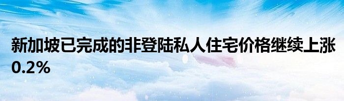 新加坡住宅價格指數(shù)(SRPI)的初步估計顯示,新加坡已完成的非登陸私人住宅價格繼續(xù)上漲0.2%,此前一個月修正后上調(diào)0.3%。
