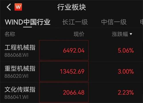 1. 行業板塊方面,重型機械指數和工程機械指數的上漲幅度比較大。其中建設機械、柳工、廈門股份直接漲停。