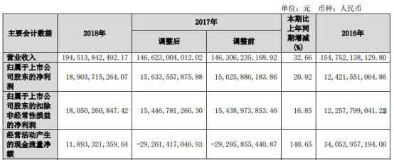 2018年,保利地產實現營業收入1945.14億元,同比增長32.66%;歸屬于上市公司股東的凈利潤189.04億元,同比增長20.92%;經營活動產生的現金流量凈額118.93億,同比增長140.65%;每股基本盈利1.59元,同比增長20.45%。