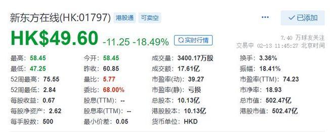 2月13日新東方在線在港股中繼續(xù)出現(xiàn)低開(kāi)低走的態(tài)勢(shì)盤(pán)中的跌幅就達(dá)到了21%,目前每股暴跌51.75港元,下跌幅度達(dá)到了14.95%,目前新東方在線的市值為524億港元,此次新東方在線的股價(jià)下跌主要是由于新東方在線的執(zhí)行董事,尹強(qiáng)對(duì)公司減持了100萬(wàn)的股份,涉及到的資金就達(dá)到了6,159萬(wàn)港元,尹