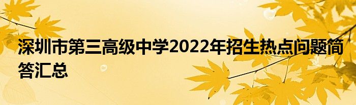 深圳市第三高級(jí)中學(xué)是一所市直屬公立中學(xué),對(duì)三高感興趣的考生和家長(zhǎng),可以通過(guò)這篇熱點(diǎn)問(wèn)題解答更加了解學(xué)校,具體詳見(jiàn)正文。