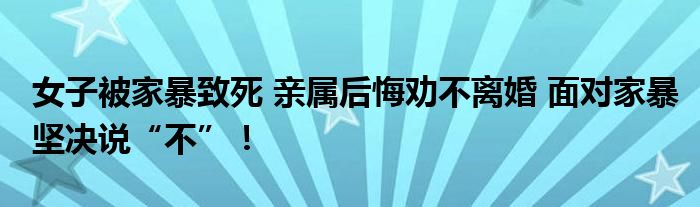 【女子被家暴致死 親屬后悔勸不離婚】很多女性在沒(méi)有結(jié)婚前,都以為自己的另一半會(huì)一直對(duì)自己好,但當(dāng)結(jié)婚之后,她們就會(huì)發(fā)現(xiàn)原來(lái)婚后的生活就是一地雞毛。結(jié)婚后,夫妻二人可能會(huì)因?yàn)楦鞣N事情爭(zhēng)吵不休,有些人甚至?xí)?dòng)手打人,也就是所謂的家暴。面對(duì)家暴行為,哪怕是只發(fā)生了一次,都該報(bào)警處理,如果實(shí)在是過(guò)不下去了就離婚,絕對(duì)不能容忍!