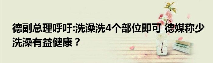 為了節省能源,德國政客可謂是操碎了心,但是每一方面都嚴重影響民眾的正常生活,這樣豈是長久之計?夏季即將來臨,洗澡洗4個部位可還行?