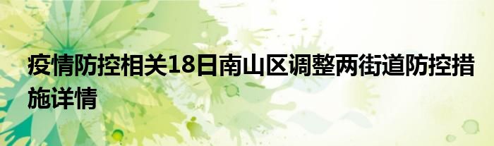 根據通告,自4月18日12時起,將南山區新型冠狀病毒肺炎疫情防控指揮部辦公室第75號通告劃定的防范區由南山街道全域(除封控區、管控區外),調整為創業路—南山大道—登良路—南光路圍合區域(除封控區、管控區外)及南光路46號。