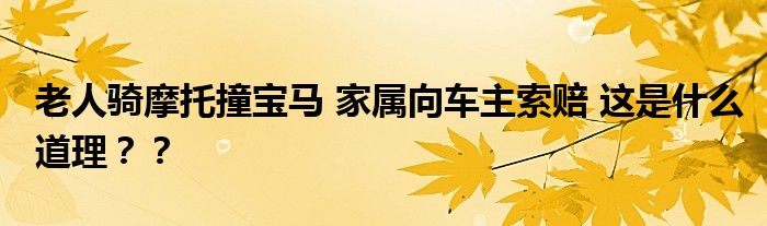 【老人騎摩托撞寶馬 家屬向車主索賠】據報道,4月19日,廣東茂名一女子將自己的寶馬車停在劃線的車位上,一位老人騎摩托車摔倒在車后。沒想到,老人的家屬要求陳女士賠償醫藥費。