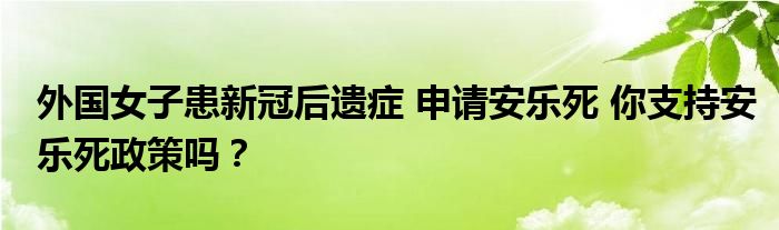 【外國女子患新冠后遺癥 申請安樂死】近日,加拿大一名50歲女子,因不堪新冠肺炎后遺癥對其身體、精神和經(jīng)濟(jì)上的多重折磨與打擊,已申請安樂死。