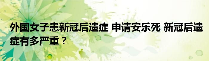 外國女子患新冠后遺癥 申請安樂死
