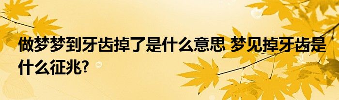 【做夢夢到牙齒掉了是什么意思】做夢夢見牙齒掉了,夢到牙齒掉了究竟意味著什么,預(yù)示著什么呢?日有所思,夜有所夢,做夢是人的正常生理與心理現(xiàn)象,在夢中,夢見牙齒掉了是吉兆還是不好的預(yù)示?
