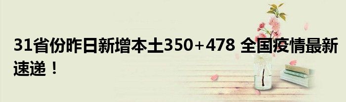 【31省份昨日新增本土350+478】據國家衛健委網站,8月8日0—24時,31個省(自治區、直轄市)和新疆生產建設兵團報告新增確診病例399例。其中境外輸入病例49例(廣東16例,北京9例,福建8例,四川7例,上海2例,廣西2例,天津1例,遼寧1例,黑龍江1例,江蘇1例,云南1例),含6例由無癥狀感染者轉為確診病例(廣東3例,福建2例,四川1例);本土病例350例。