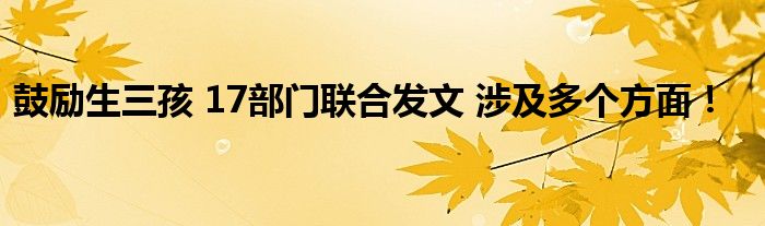 【鼓勵(lì)生三孩 17部門聯(lián)合發(fā)文】為鼓勵(lì)生三孩,17部門聯(lián)合發(fā)文!將會(huì)進(jìn)一步完善和落實(shí)積極生育支持措施!