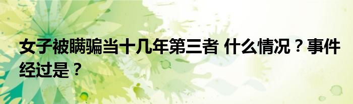 【女子被瞞騙當(dāng)十幾年第三者】今日焦點(diǎn)新聞,關(guān)于“女子被瞞騙當(dāng)十幾年第三者”的報(bào)道在網(wǎng)上激起千層浪,網(wǎng)友們熱議不斷。這究竟是什么情況?據(jù)稱(chēng),女子被騙財(cái)騙色十余年,120萬(wàn)恐打水漂,這就是校園到婚紗的愛(ài)情?真的是孽緣啊!