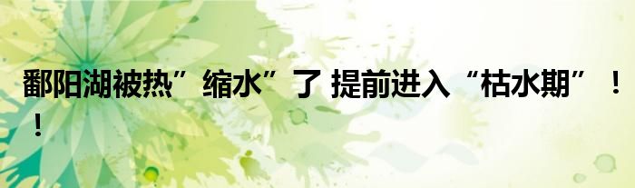【鄱陽湖被熱"縮水"了】今年是中國最大淡水湖鄱陽湖1951年有記錄以來最早進入枯水期的年份。受持續高溫少雨天氣影響,中國最大淡水湖鄱陽湖水位持續走低,通江水體面積持續“縮水”。