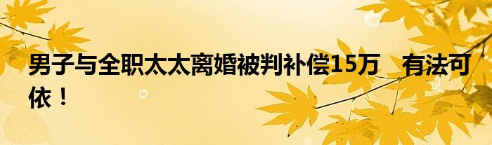 【男子與全職太太離婚被判補(bǔ)償15萬】合法,合情,合理,合人心。這才公平!